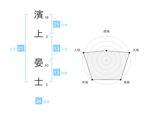 濱上 晏士さんの天格は21画の5点!