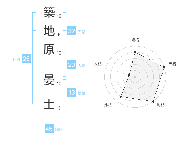 築地原 晏士さんの総格は45画の4点!