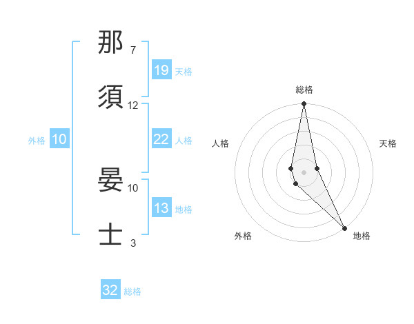 那須 晏士さんの総格は32画の5点!
