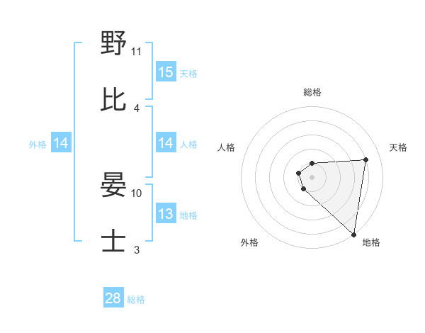 野比 晏士さんの外格は14画の1点!