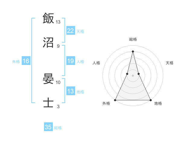 飯沼 晏士さんの天格は22画の1点!