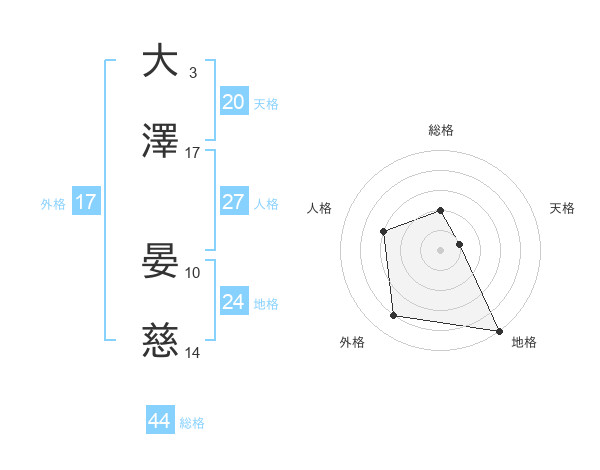 大澤 晏慈さんの天格は20画の1点!
