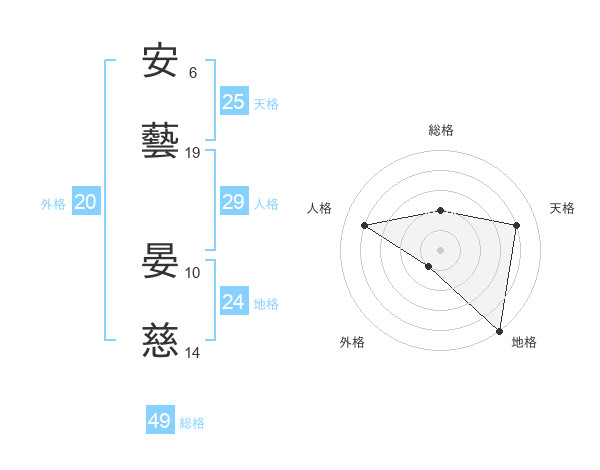 安藝 晏慈さんを姓名の画数から五運を鑑定
