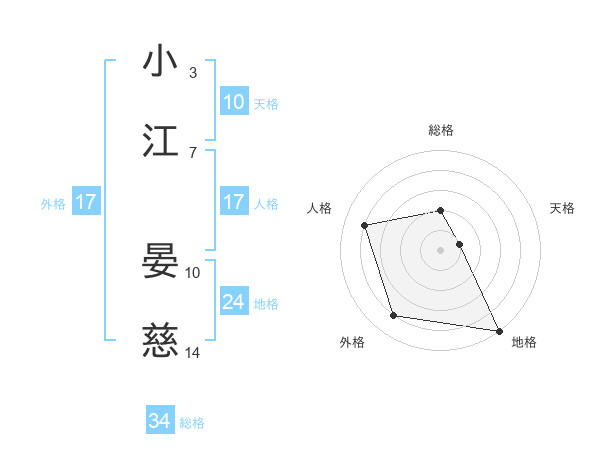 小江 晏慈さんを姓名の画数から五運を鑑定