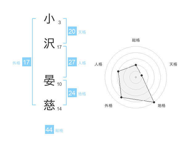 小沢 晏慈さんを姓名の画数から五運を鑑定
