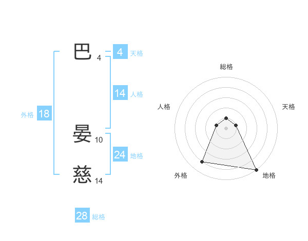 巴 晏慈さんの総格は28画の1点!