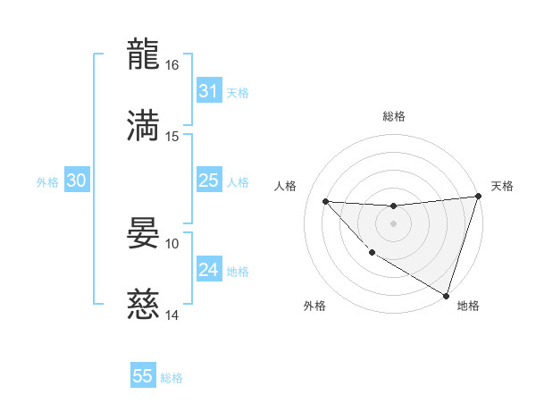 龍満 晏慈さんの天格は31画の5点!