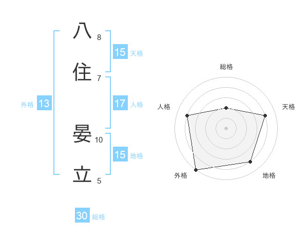 八住 晏立さんの天格は15画の4点!