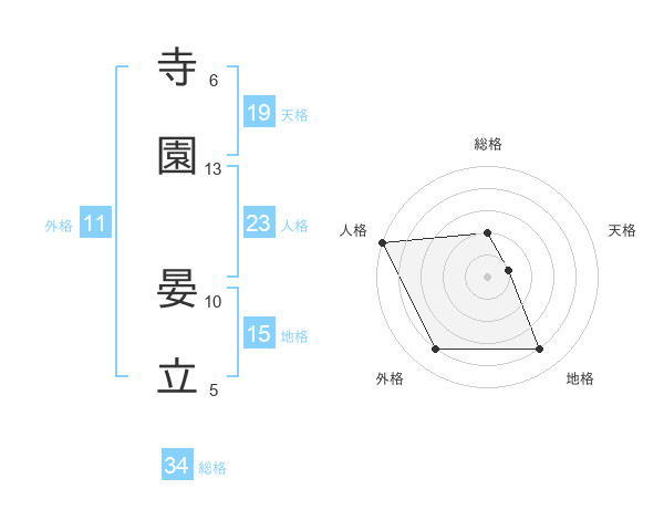寺園 晏立さんを姓名の画数から五運を鑑定