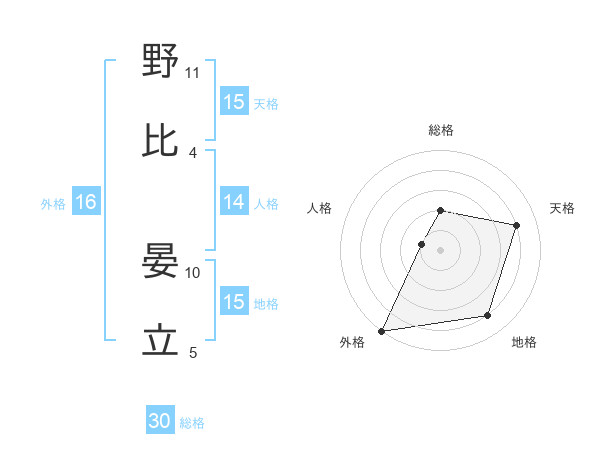 野比 晏立さんの外格は16画の5点!