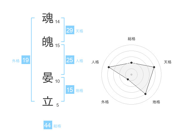 魂魄 晏立さんの総格は44画の2点!