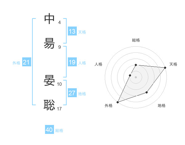 中昜 晏聡さんを姓名の画数から五運を鑑定