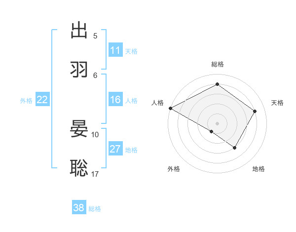 出羽 晏聡さんを姓名の画数から五運を鑑定