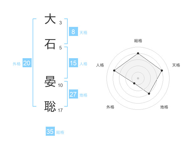 大石 晏聡さんを姓名の画数から五運を鑑定