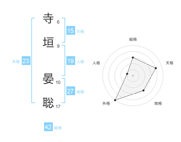 寺垣 晏聡さんを姓名の画数から五運を鑑定