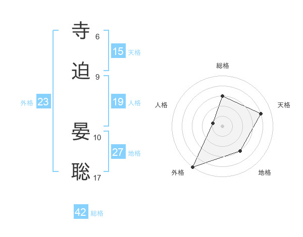 寺迫 晏聡さんを姓名の画数から五運を鑑定