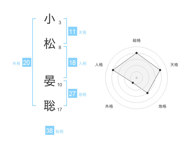 小松 晏聡さんの総格は38画の4点!