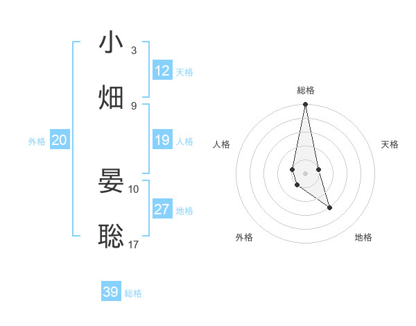 小畑 晏聡さんを姓名の画数から五運を鑑定