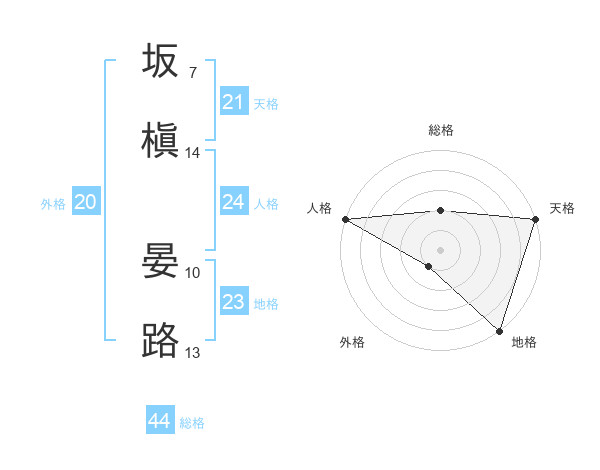 坂槇 晏路さんを姓名の画数から五運を鑑定