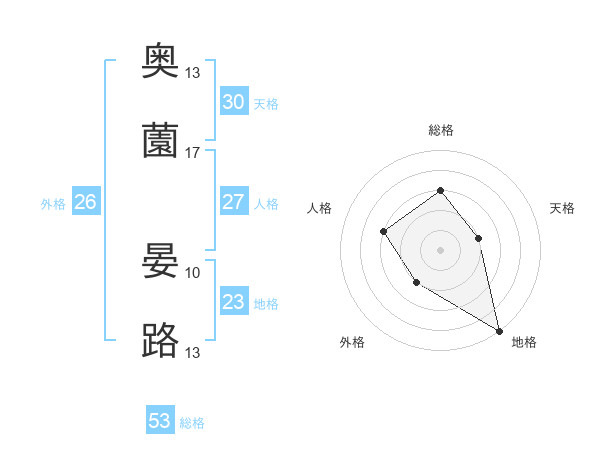 奥薗 晏路さんの総格は53画の3点!