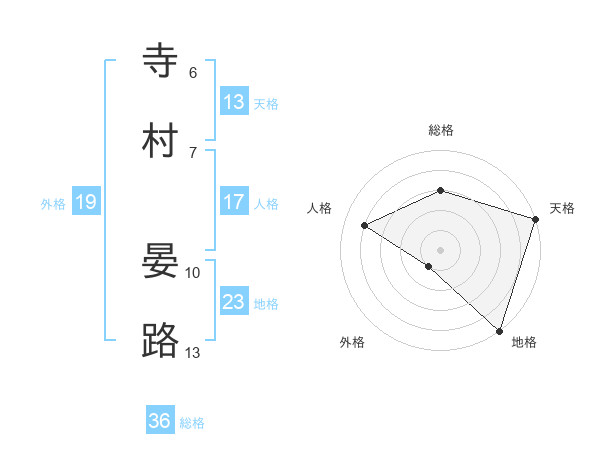 寺村 晏路さんを姓名の画数から五運を鑑定