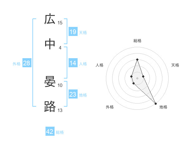 広中 晏路さんを姓名の画数から五運を鑑定