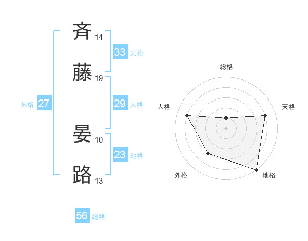 斉藤 晏路さんを姓名の画数から五運を鑑定