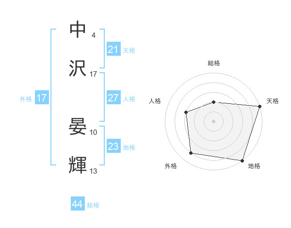 中沢 晏輝さんの外格は17画の4点!