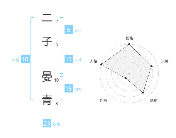 二子 晏青さんの総格は23画の5点!