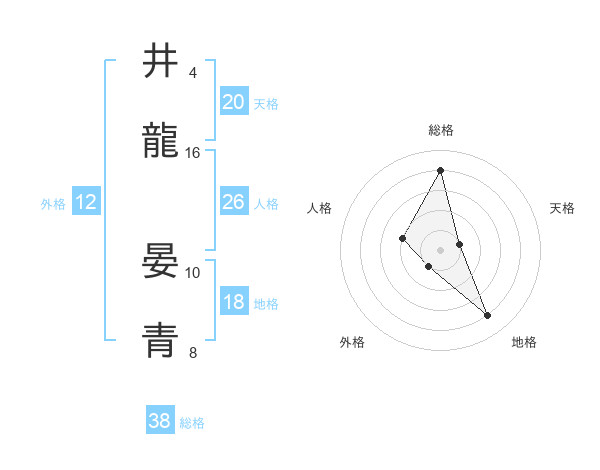 井龍 晏青さんの天格は20画の1点!