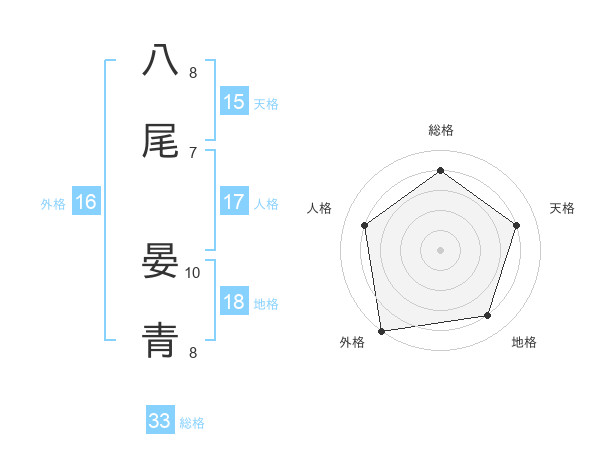 八尾 晏青さんを姓名の画数から五運を鑑定