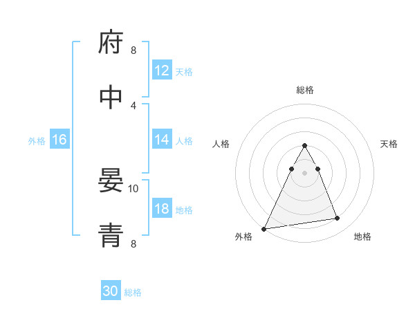 府中 晏青さんの総格は30画の2点!