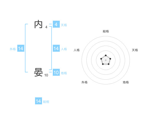 内 晏さんの外格は14画の1点!