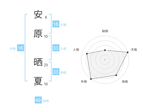 安原 晒夏さんを姓名の画数から五運を鑑定