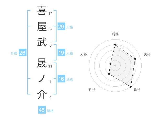 喜屋武 晟ノ介さんの総格は45画の4点!