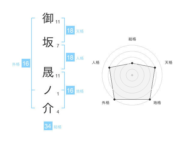 御坂 晟ノ介さんを姓名の画数から五運を鑑定