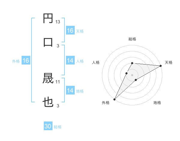 円口 晟也さんの天格は16画の5点!
