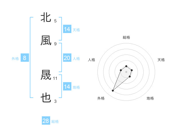 北風 晟也さんを姓名の画数から五運を鑑定