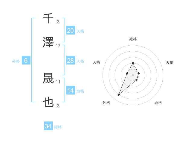 千澤 晟也さんを姓名の画数から五運を鑑定