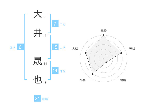 大井 晟也さんの総格は21画の5点!