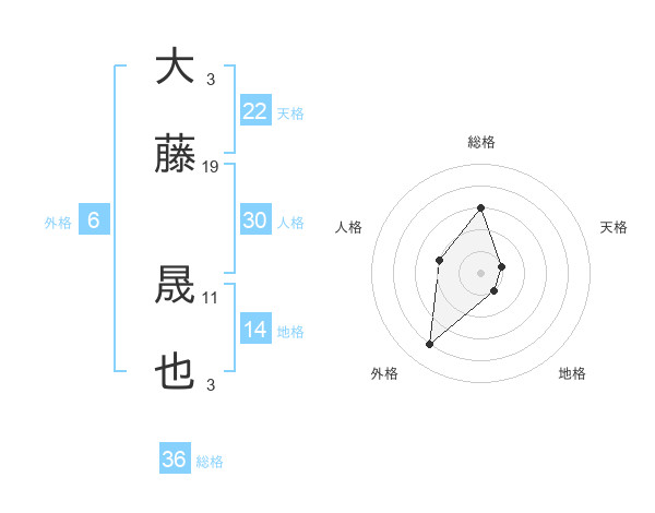 大藤 晟也さんの天格は22画の1点!