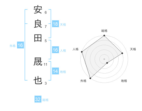 安良田 晟也さんの総格は32画の5点!