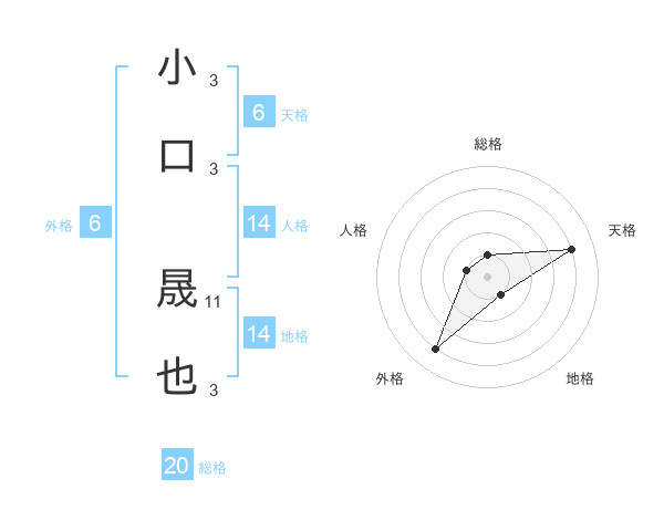 小口 晟也さんの天格は6画の4点!