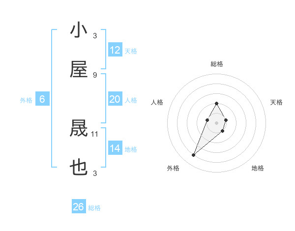 小屋 晟也さんを姓名の画数から五運を鑑定