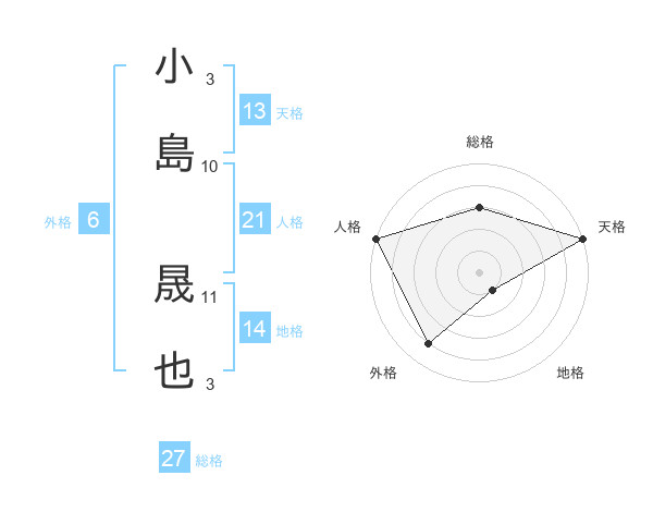 小島 晟也さんの総格は27画の3点!