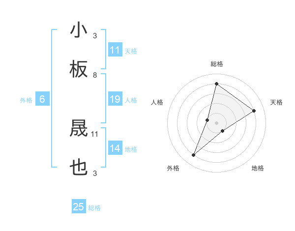 小板 晟也さんの総格は25画の4点!