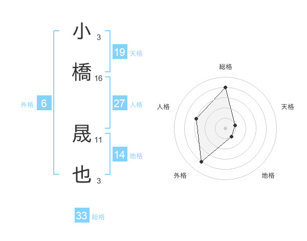 小橋 晟也さんの総格は33画の4点!