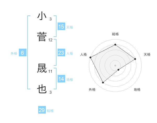 小菅 晟也さんの総格は29画の4点!