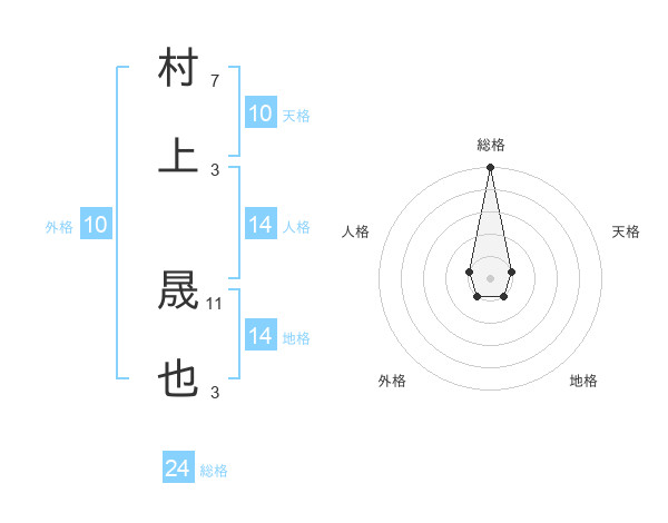 村上 晟也さんの総格は24画の5点!