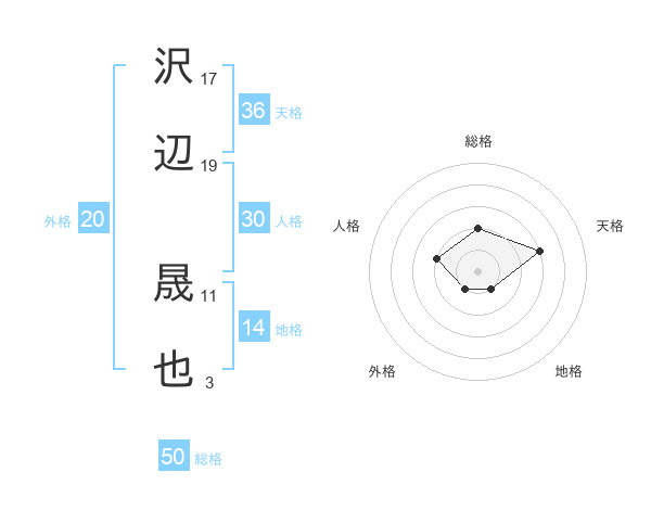 沢辺 晟也さんの総格は50画の2点!